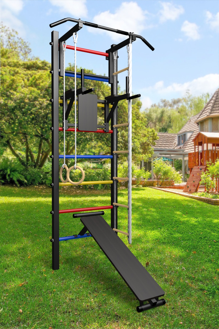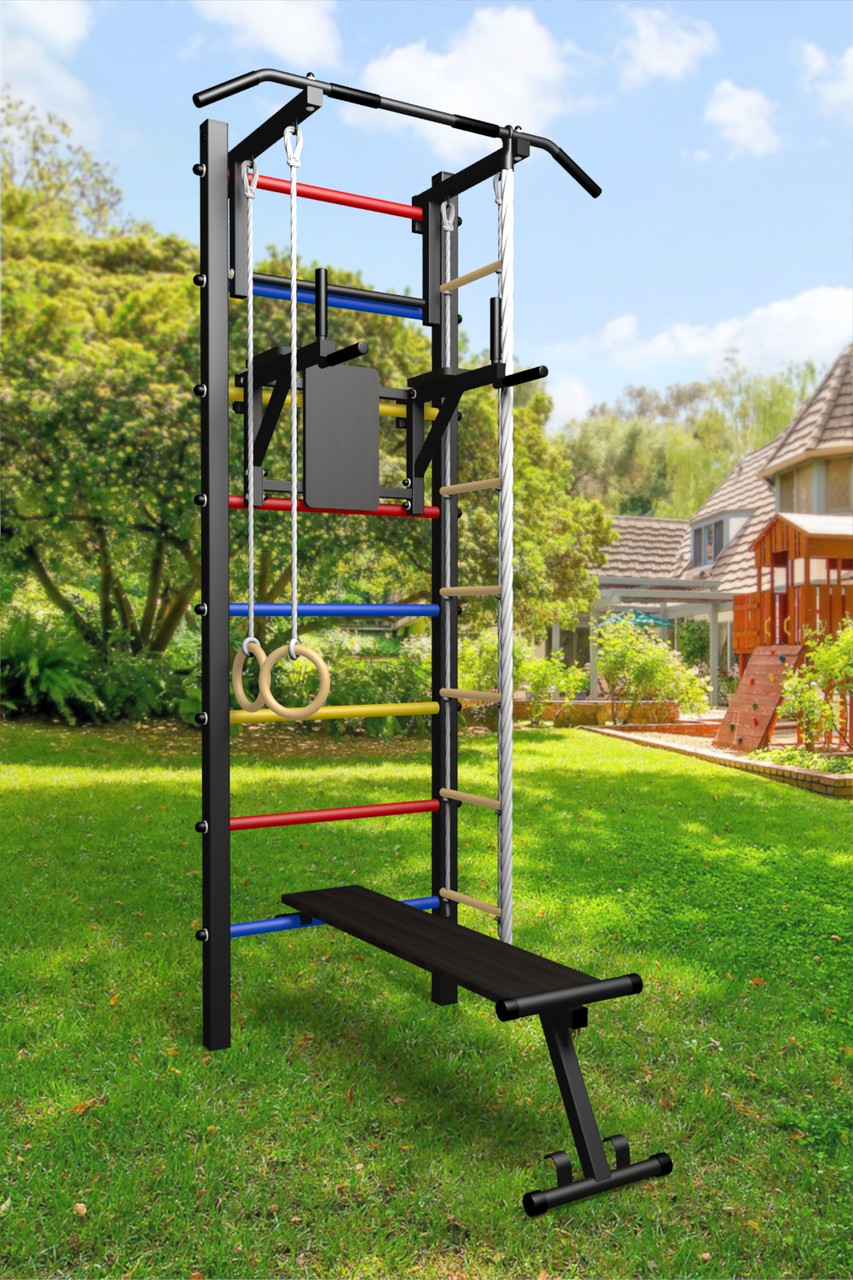 - Цвет покраски: черный; Цвет фурнитуры: черный; Цвет ступеней: черный, разноцветный, синий, желтый, красный.