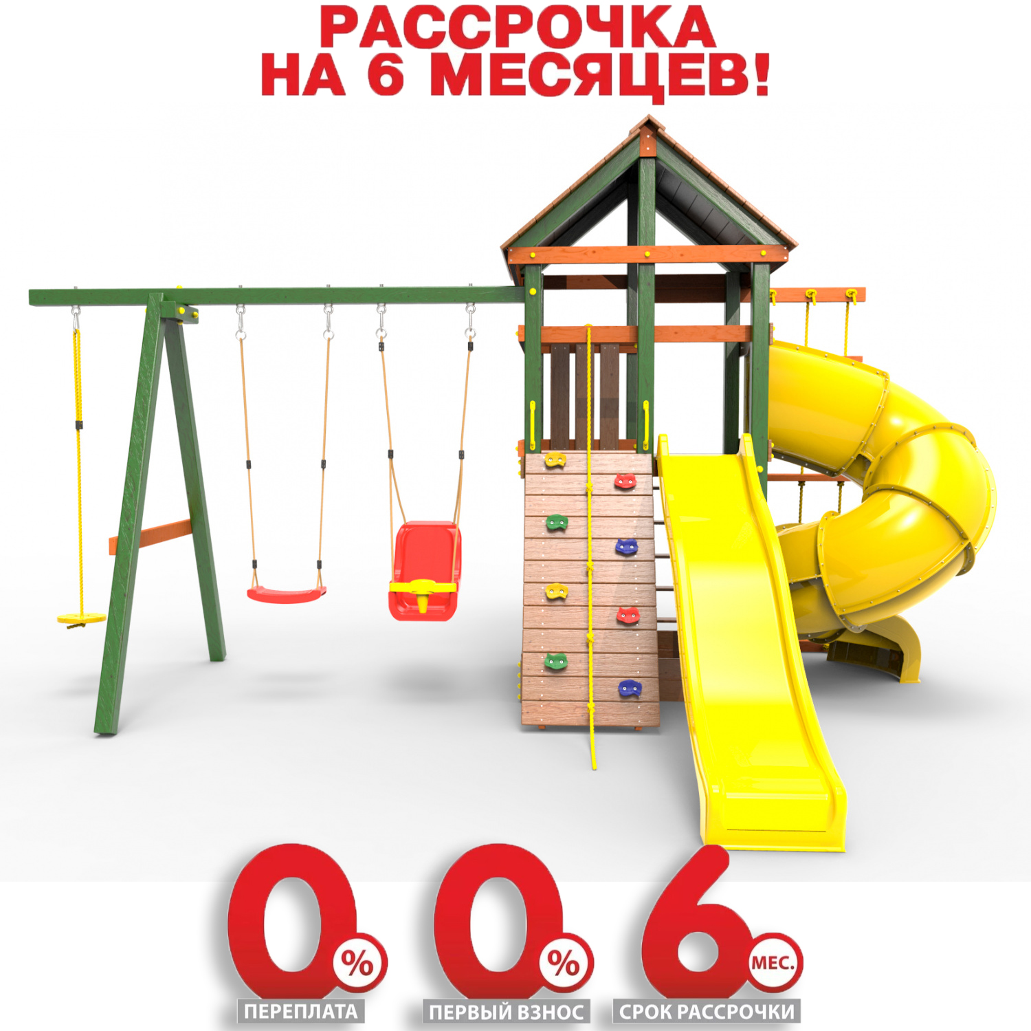 Обращаем Ваше внимание, что фактический цвет детской площадки может отличаться от представленных фото на сайте. Специфика окраски нетоксичными пропитками и красителями допускает отклонения в цветовой гамме отгружаемых изделий. Также обратите внимание, что фактический цвет может отличаться из-за цветопередачи устройства на котором Вы смотрите фото.