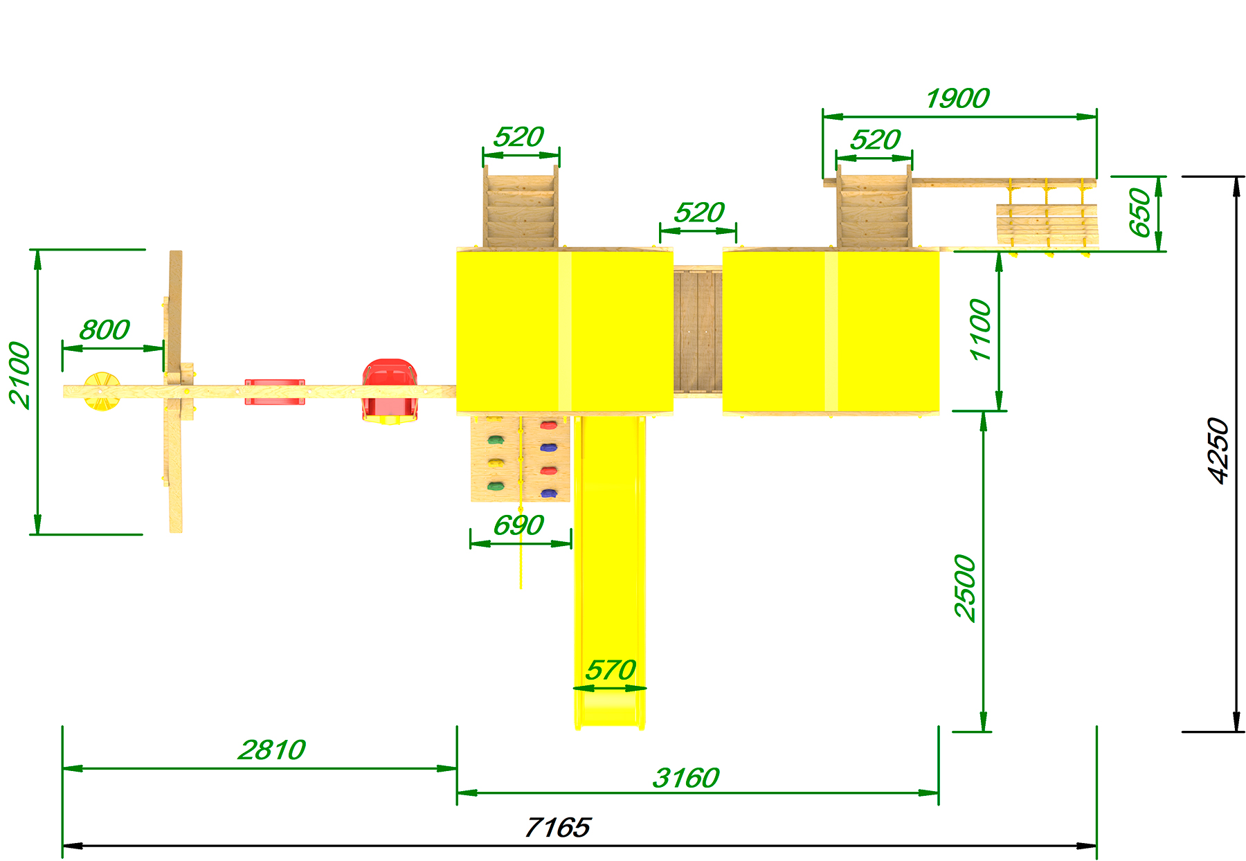 -длина балки с качелями (или с рукоходом и качелями) 2,8 метра;