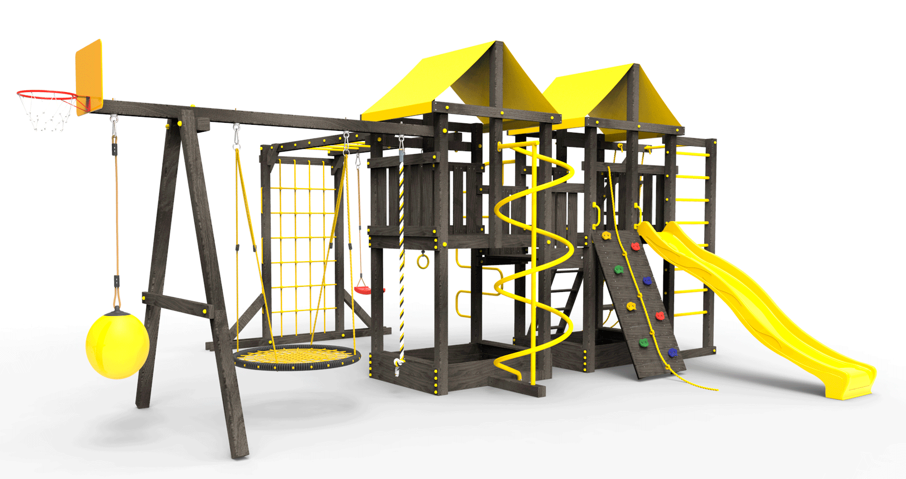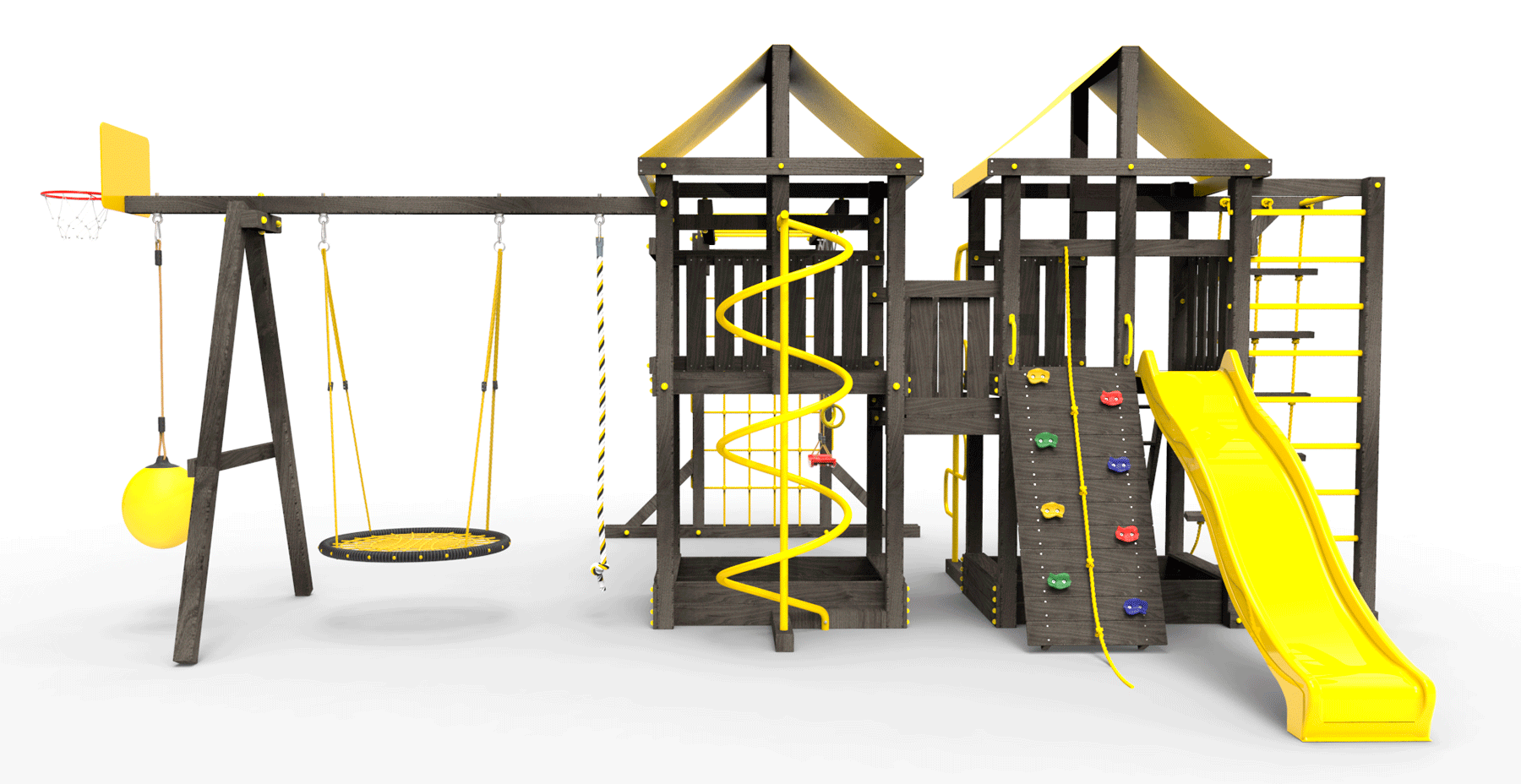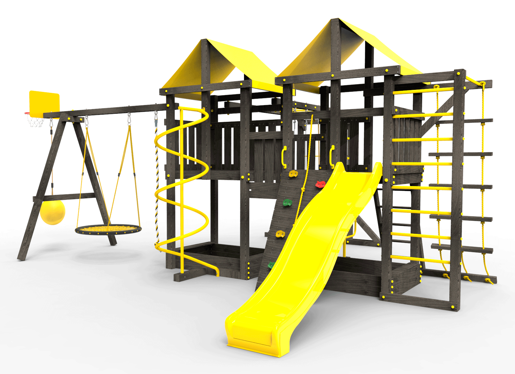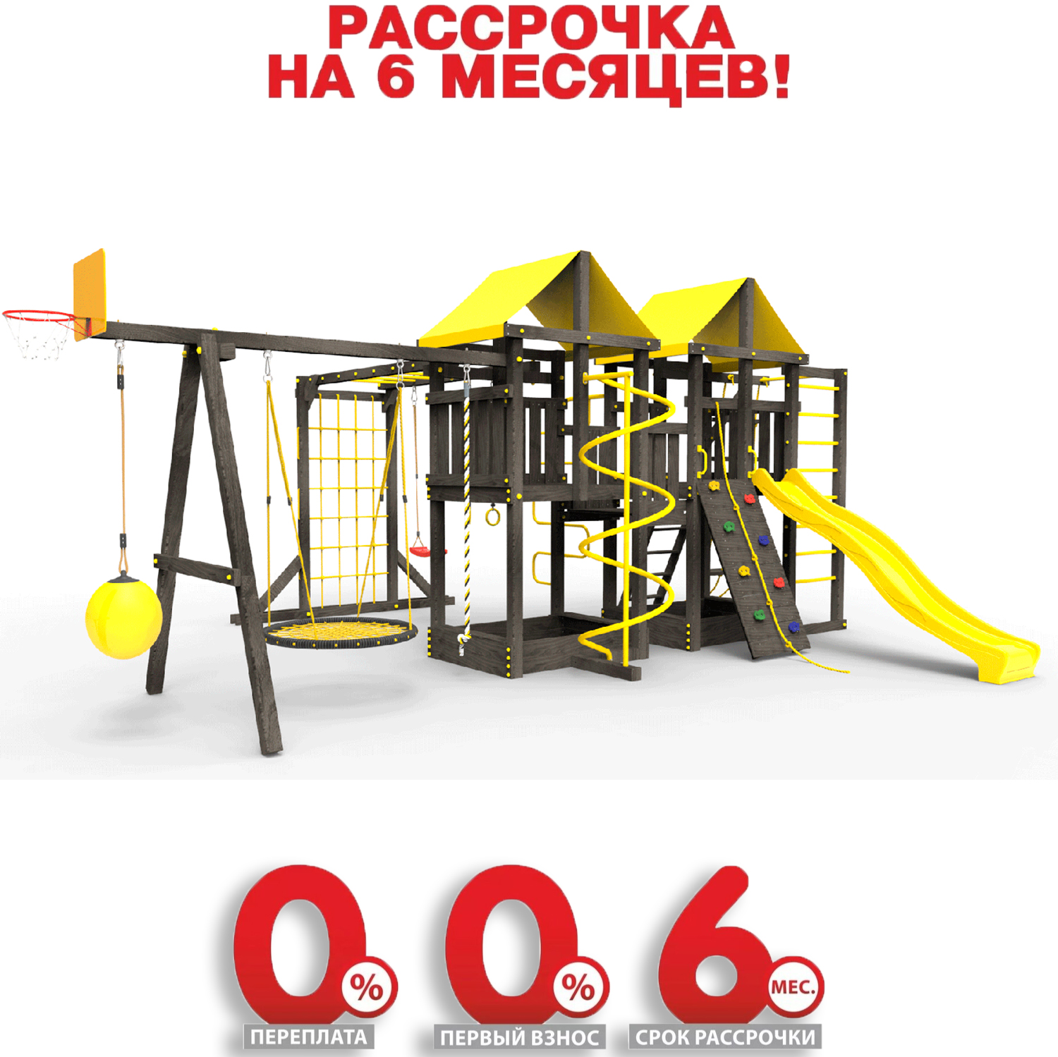 Обращаем Ваше внимание, что фактический цвет детской площадки может отличаться от представленных фото на сайте. Специфика окраски нетоксичными пропитками и красителями допускает отклонения в цветовой гамме отгружаемых изделий. Также обратите внимание, что фактический цвет может отличаться из-за цветопередачи устройства на котором Вы смотрите фото.