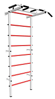 Стойки шведской стенки Sv Pro изготовлены из профильной трубы 40х40х2 мм. Ступени изготовлены из круглой, стальной трубы, покрытой резиной (не скользят, не натирают мозоли, не прокручиваются, не имеют запаха, приятны на ощупь). Устанавливается к стене при помощи 6 кронштейнов. Турник в шведской стенке Sv Pro изготовлен из профильной трубы 40х40х2 мм и круглой трубы D30 мм. На перекладину, в местах хватов, одеты резиновые ручки.